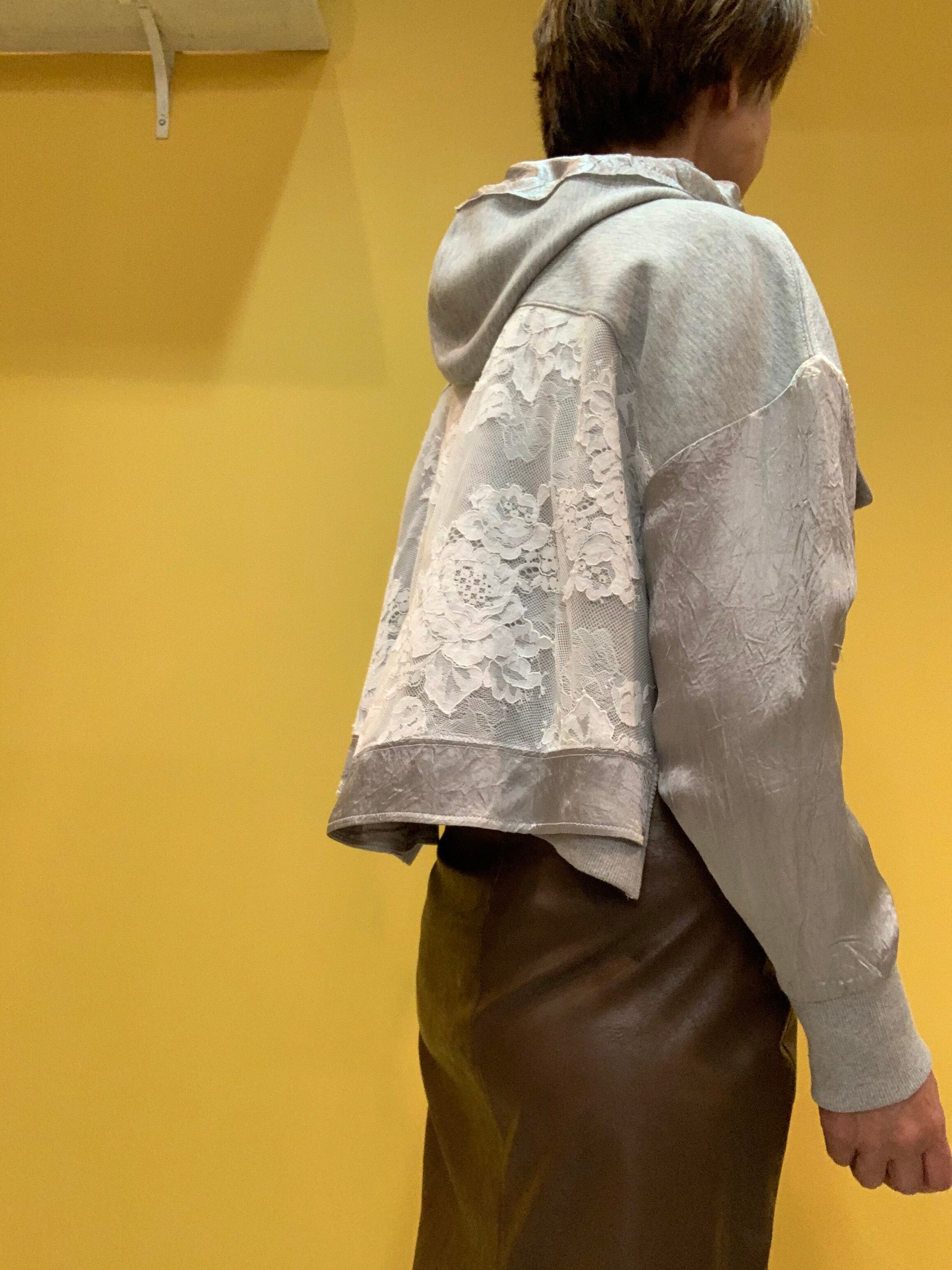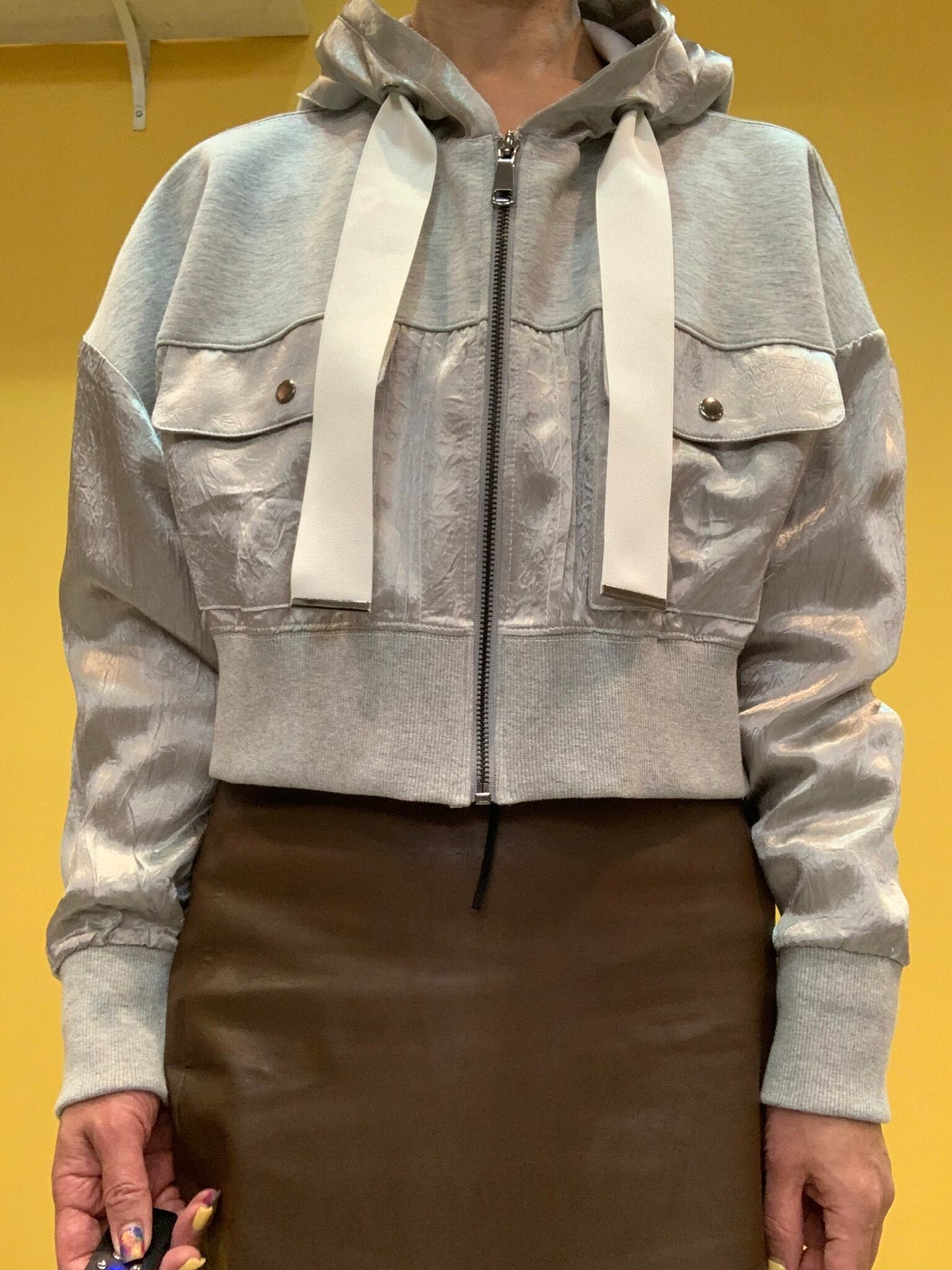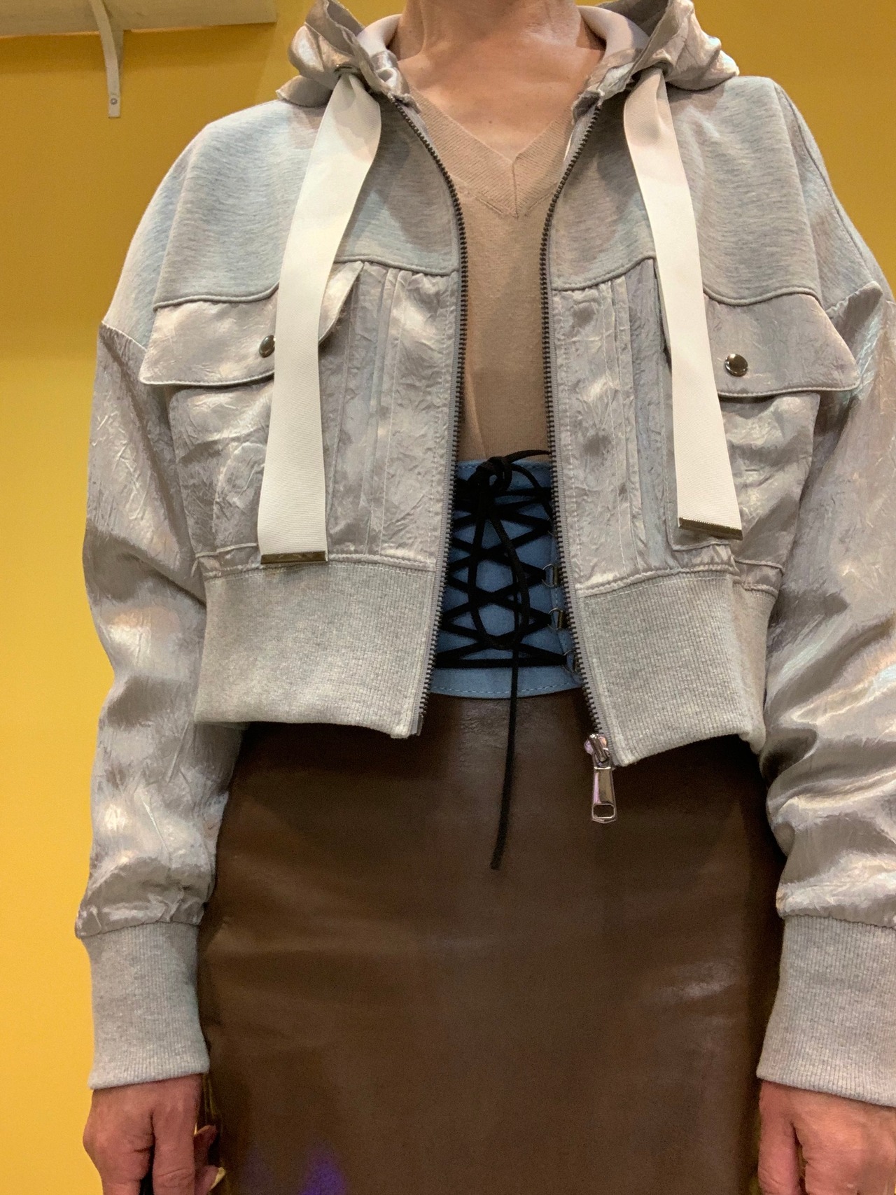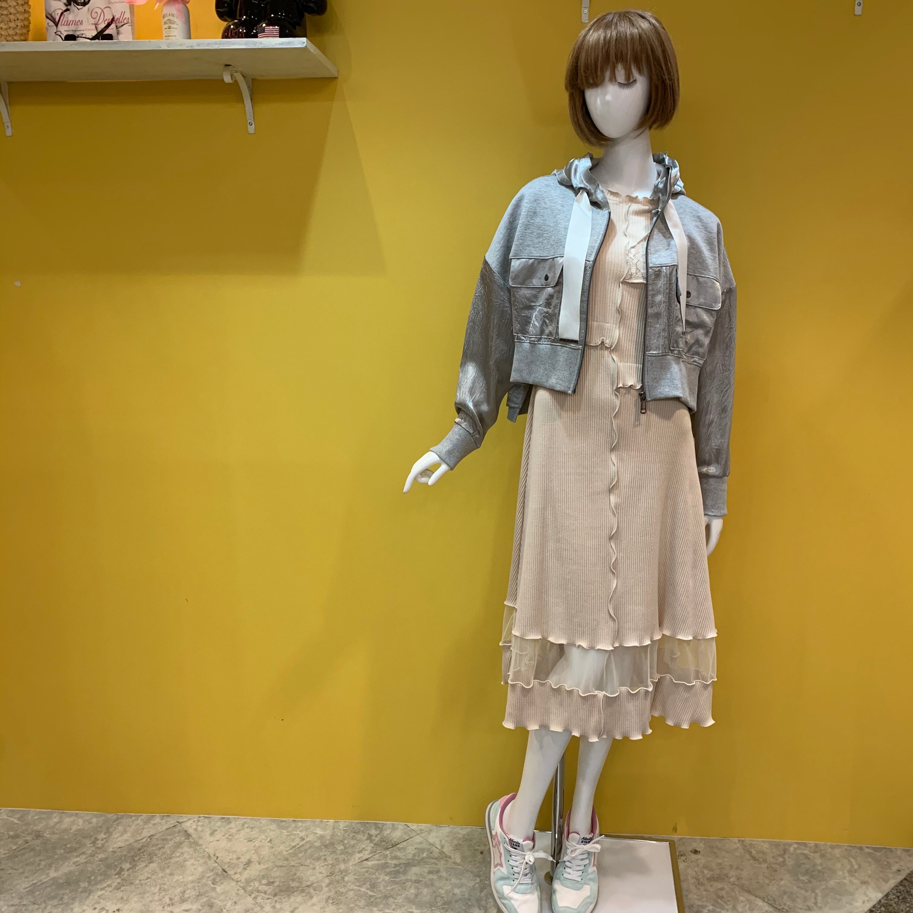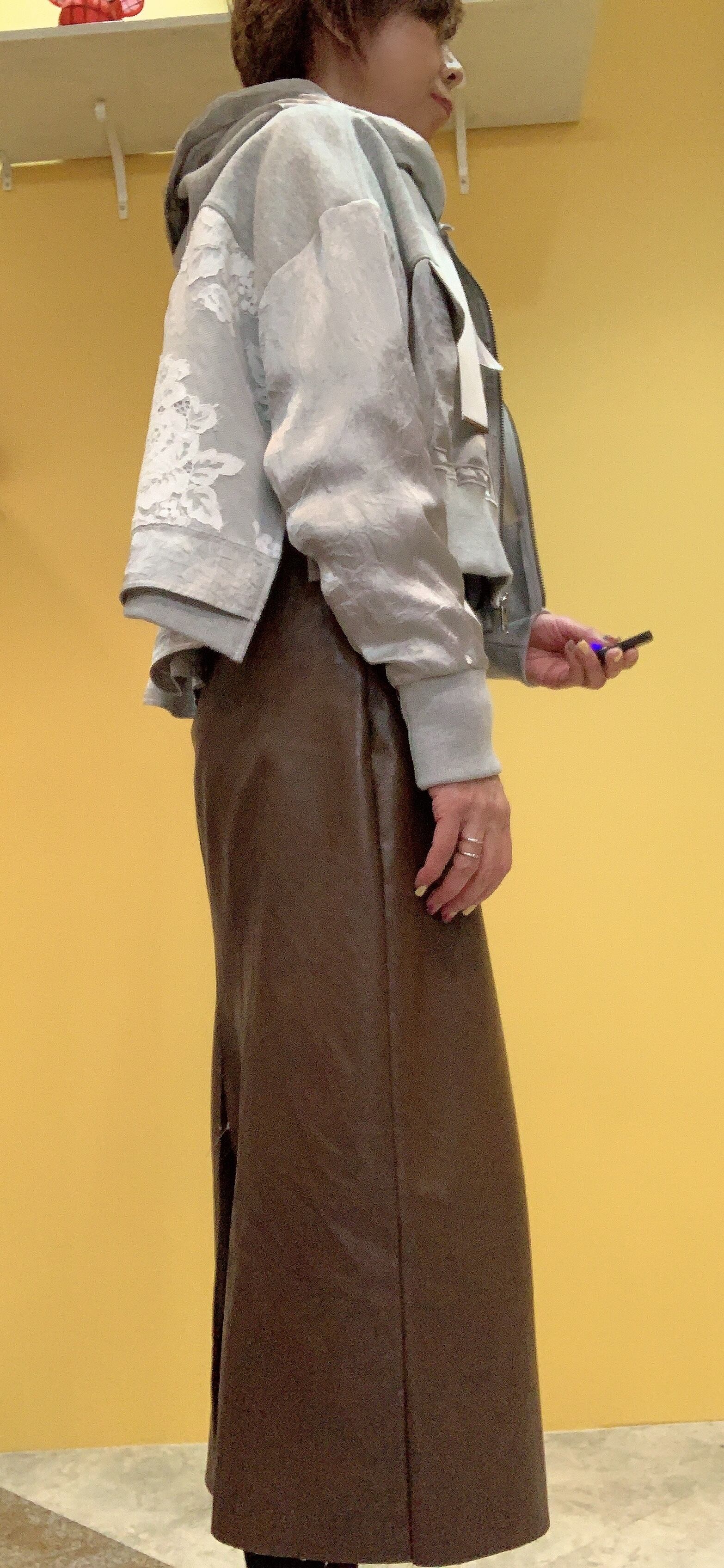 着丈が短めなのでワンピースやスカート、ワイドパンツなどに良く合います。