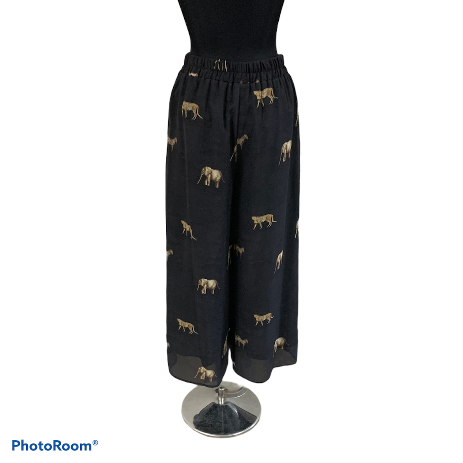 動物好きにはたまらないサファリプリントのワイドパンツです。